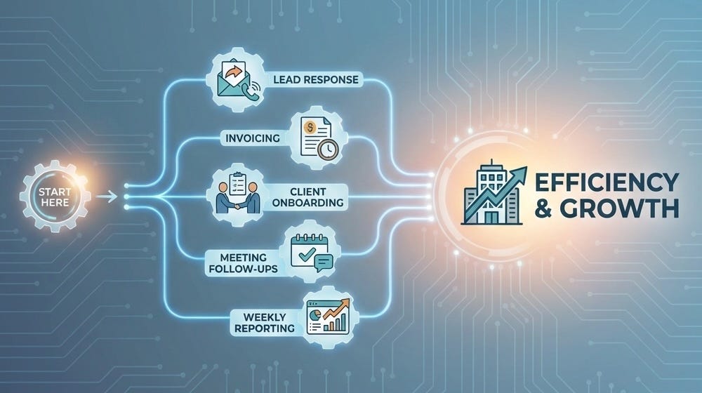 The businesses that benefit from automation do not start with big projects. They start with one workflow. Here are the five I recommend starting with.
