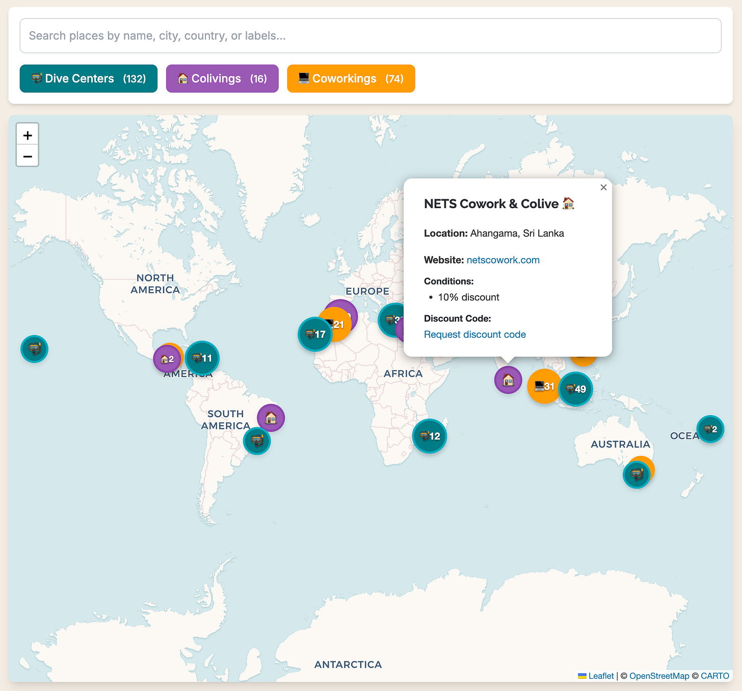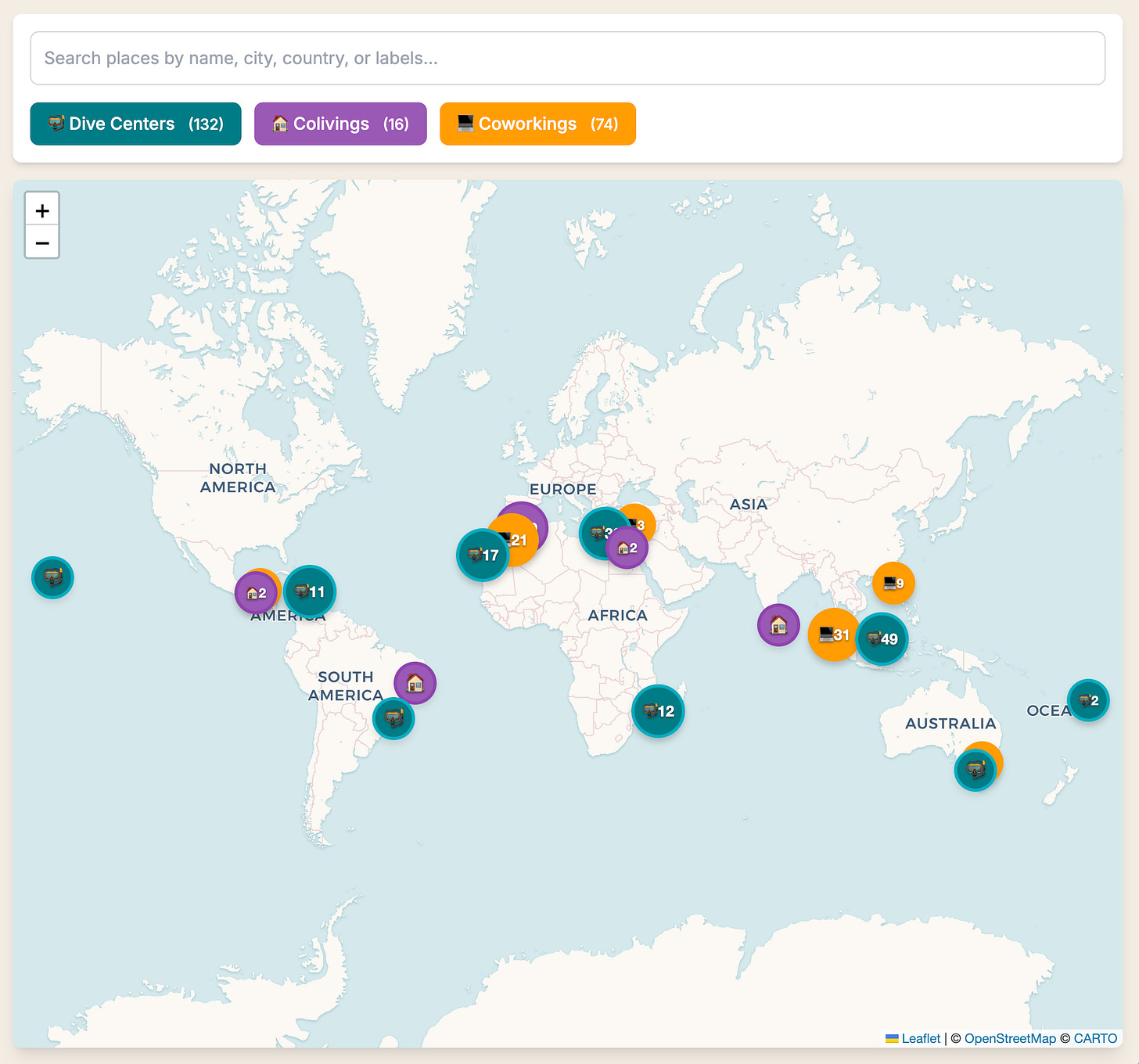 After sharing how we automated outreach for dive centers and coliving / coworking partners, this chapter is about the thing people actually use – our Partner Map.